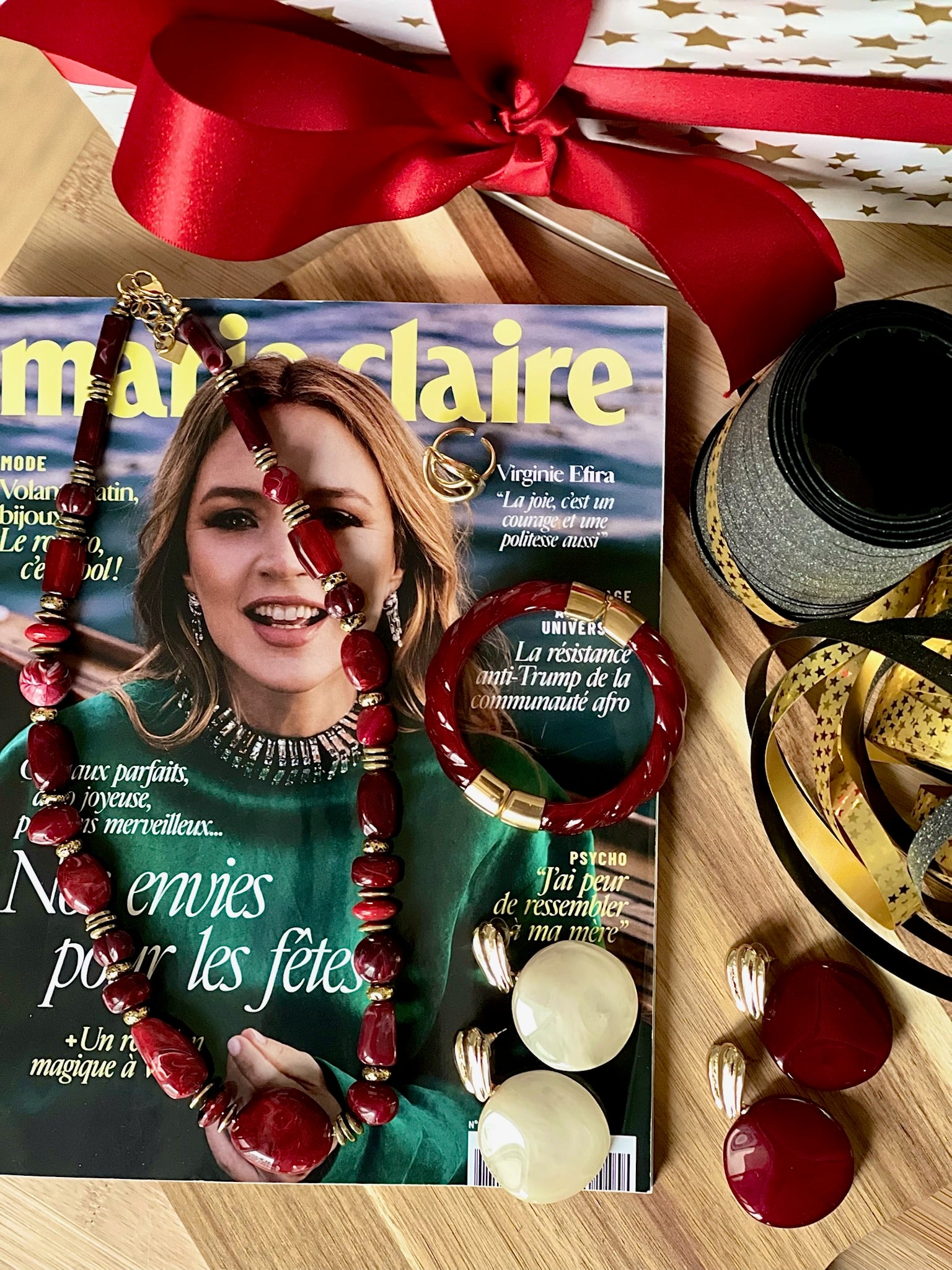 Élégant et audacieux, ce bracelet en grosses pierres rouges et sa brillance unique. Matière rigide et solide s'ouvre sur la partir dorée et aimantée, ce bijou s’adapte parfaitement au poignet.