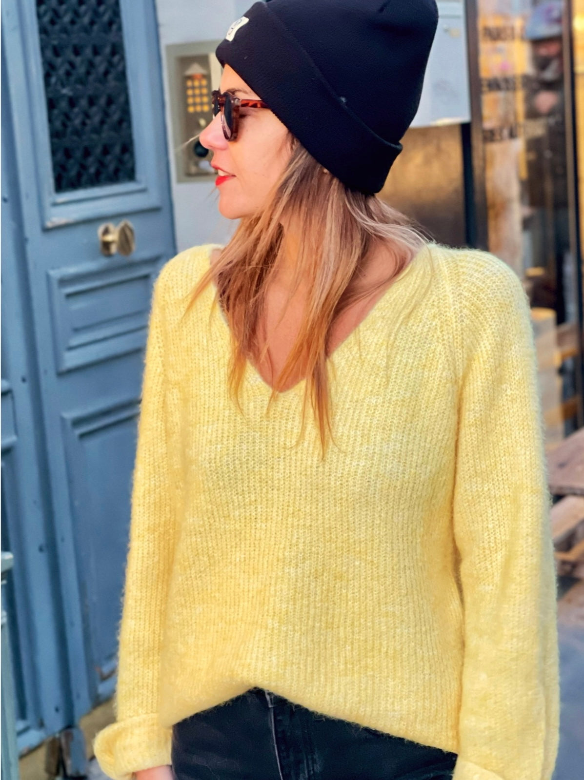 Apporte une touche de lumière à ta tenue avec ce pull en maille duveteuse coloris jaune pastel. Sa coupe décontractée et son col V flatteur en font une pièce facile à porter au quotidien. Ultra confortable, il offre une texture moelleuse parfaite pour la mi-saison comme pour les journées fraîches.