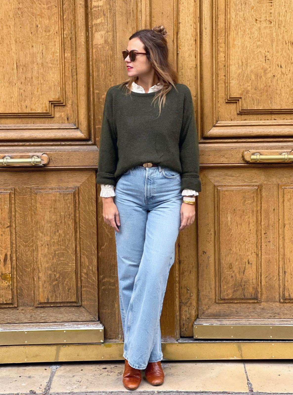 Confort et élégance s’unissent dans ce pull en maille au coloris vert profond, une teinte intemporelle qui s’accorde avec toutes les saisons.