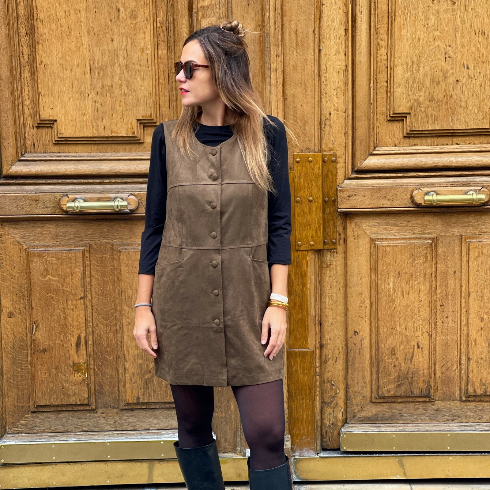 Robe sans manches en suédine – Kaki