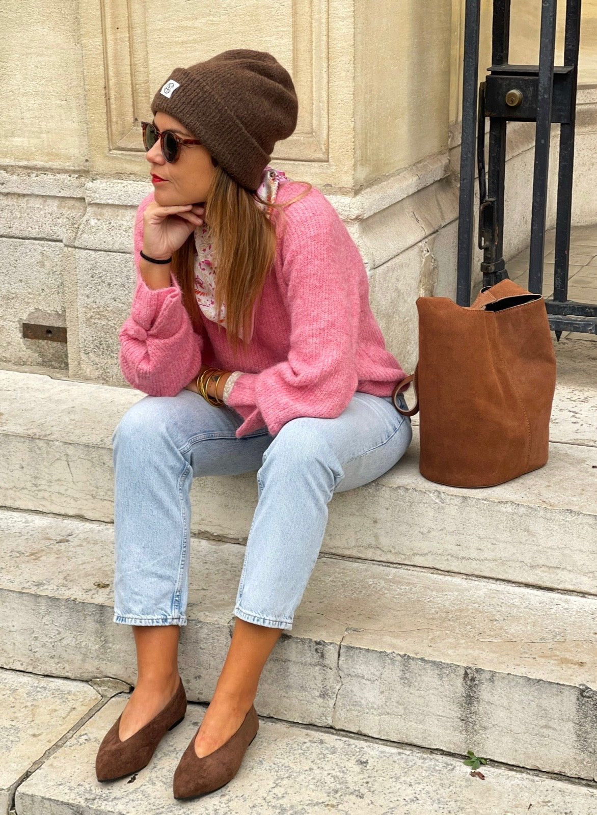 Le Sac Cuir Lilas est un sac seau en daim marron qui allie sophistication et fonctionnalité. Sa capacité spacieuse permet de ranger avec élégance tous vos essentiels, offrant une organisation pratique au quotidien. Son design moderne et intemporel s'adapte parfaitement à toutes les occasions, que ce soit pour une journée professionnelle ou une sortie plus décontractée. Confectionné en cuir de qualité supérieure, il garantit durabilité et résistance tout en développant une patine unique avec le temps.