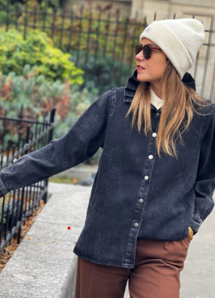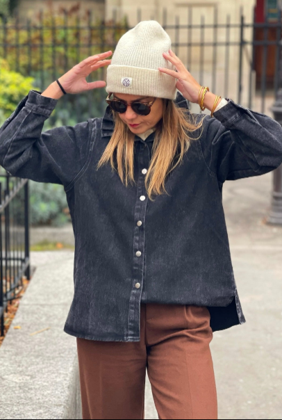 Cette chemise Merida en denim noir allie élégance et originalité grâce à son col montant .
